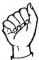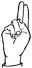 На ћирилици написано МИОМИРА ДАНЦЕР састоји се из 13 слова [?]. Исписано ћириличном једноручном азбуком за глувонеме: